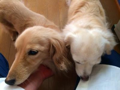 2017-01-30 甘え甘えて わんこ JUGEMテーマ:わんこ 先週末は 夫トーマスと水入らずで のんびり過ごした ハニーとくっきー。 でもなんだか いつもいっしょにいるはずの ワタシがいなくて。 しっくりしない感じも あったそうです。 たった2日ぶりですが 今日は甘えっぷりが 積極的な2ぴきでした すりすり くっきーの接近が とっても激しかったので わさわさしてあげていたら。 少しすねた感じのハニー姉さん。 それもまた愛おしい瞬間でした。 このあともちろん ハニーもわさわさしました